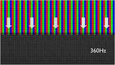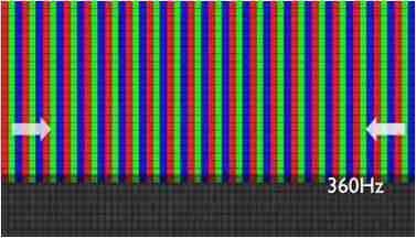传统液晶驱动是从左到右单向进行,,在画面更新速度愈来越愈快的情况下,,,位于驱动线路末端的右下角区域,,,画素的闸极来不及在短时间内获得足够电压,,,,无法显示出正确的颜色资讯。。 |