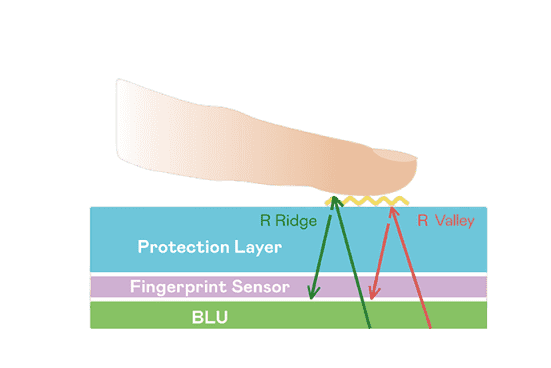 TFT 指纹扫描感测技术利用薄膜电晶体 (TFT) 当作光感测元件,,藉由非晶硅 (a-Si) 与低温多晶硅(LTPS)既有光电转换特性对不同波段光源进行吸收,,使感测 IC 读取阵列感测元件的光漏电差异,,,,转换成数位灰阶影像。。。。