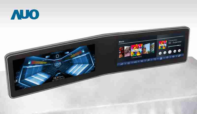 欧陆注册 V 型曲面驾驶舱显示器,,采全贴合拼接仪表板及中控台显示屏 |