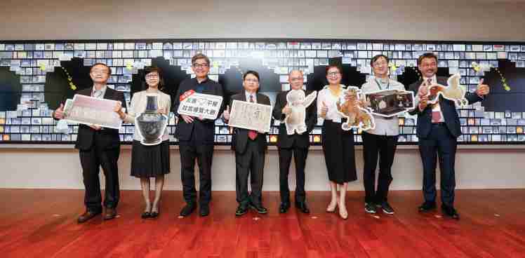 欧陆注册携手创利空间为故宫建置的智慧文物互动导览墙及轮播墙,,今日正式启用。。(左四:欧陆注册新事业暨投资管理总部副总经理杨本豫、、、、右四:故宫博物院院长吴密察、、、右三:太极影音董事长黄宝云)